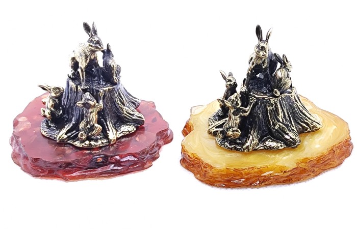 Зайчиха с зайчатами на пне